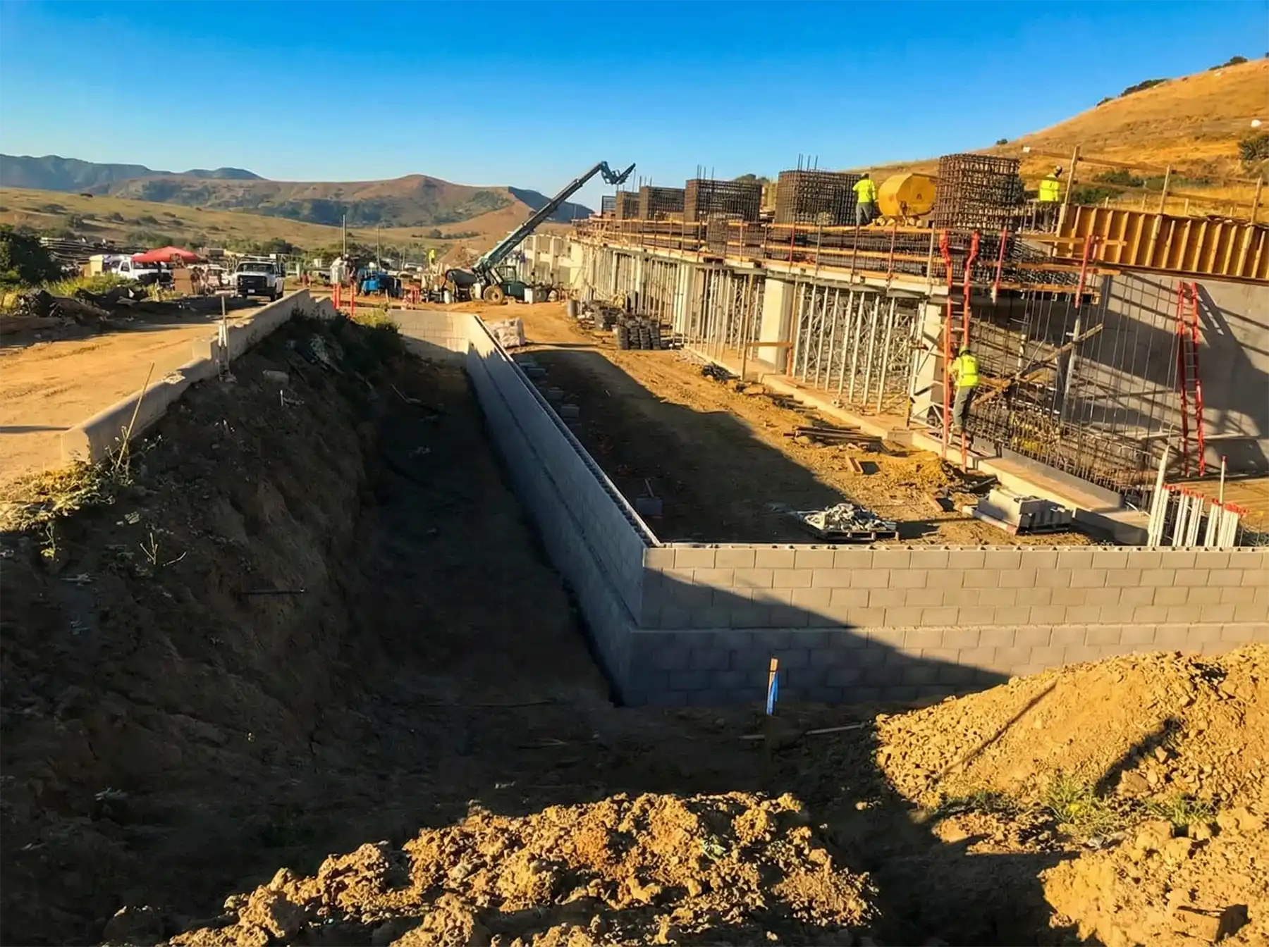 A clean, high-strength build at Camp Pendleton: thick CMU walls and concrete foundations engineered for safety, functionality, and lasting performance.